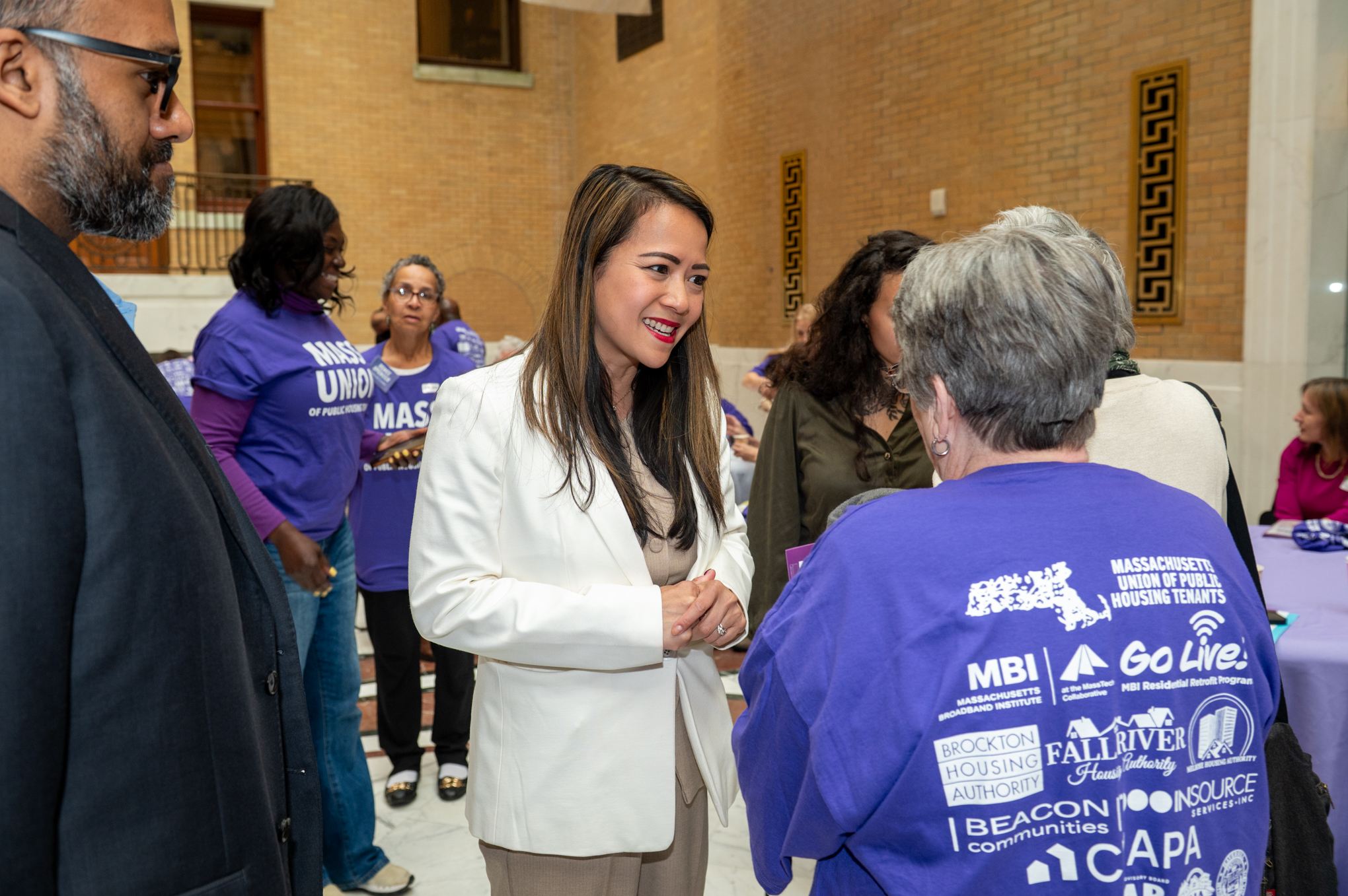 Senate Ways and Means Chair Michael Rodrigues reaffirmed the legislature’s commitment to “support your priorities and improve the lives of our friends and families in public housing,” while Representative Carole Fiola reminded tenants that “you have the power to break down barriers and elevate the voices of your neighbors.” Representative Tram Nguyen emphasized that “real change happens when tenants organize and speak from lived experience,” and EOHLC Undersecretary Danielle Bastarache captured the heart of the day – public housing is “not just bricks and sticks,” she said, but the places “where people have their homes, raise their children, and build community.” Undersecretary Bastarche also commented that even after fifteen years of national work with public housing tenants, she had never seen a gathering like our Public Housing Day.